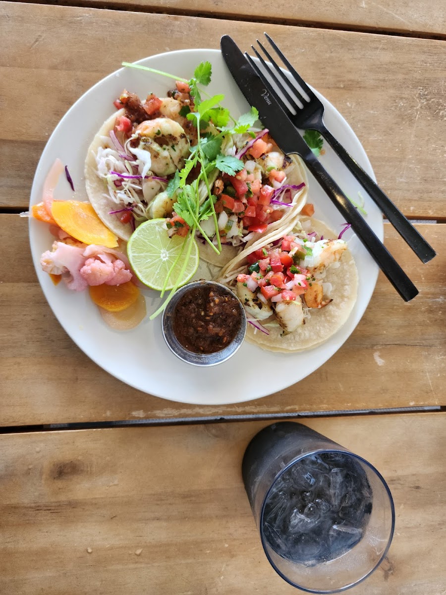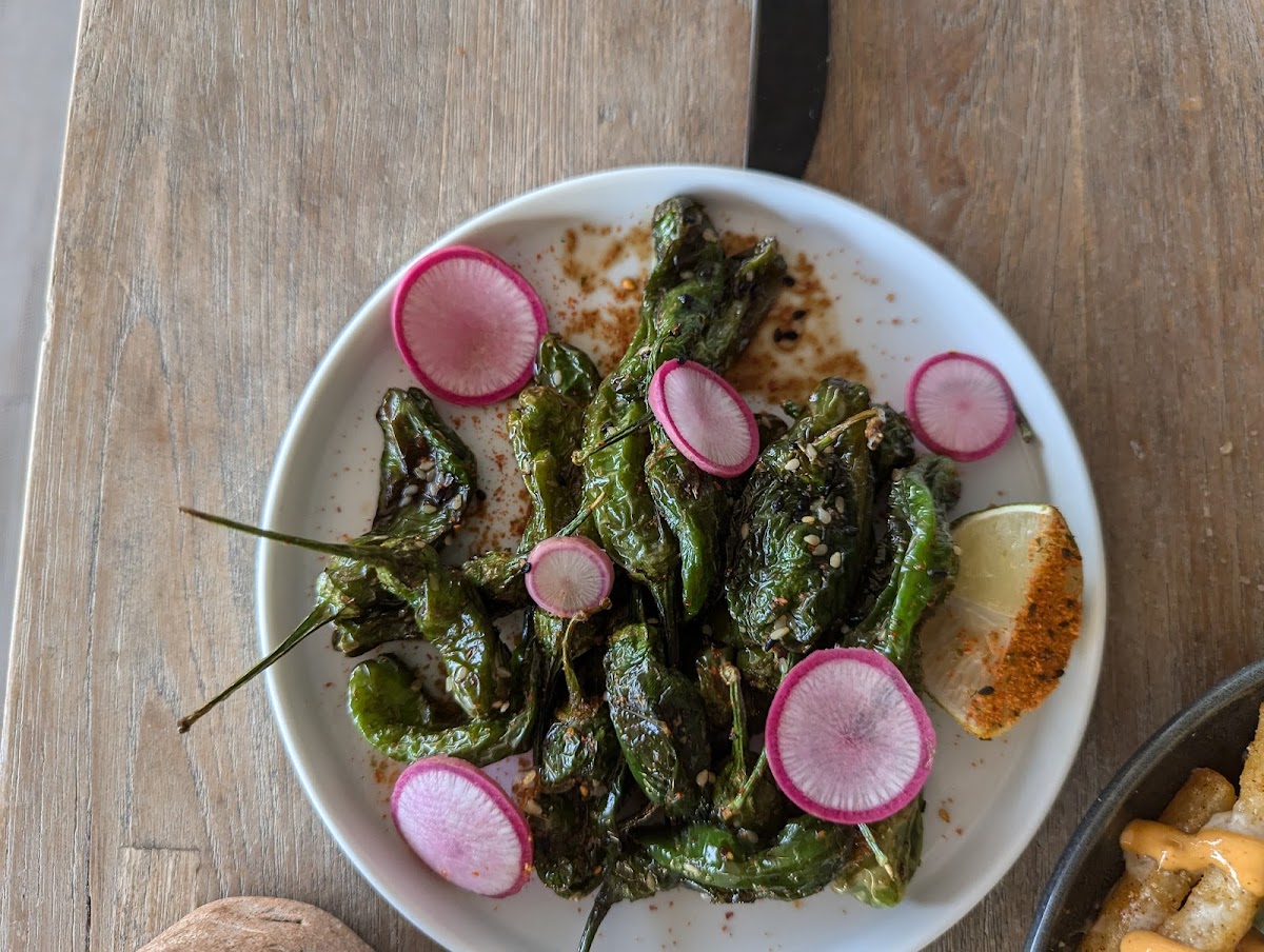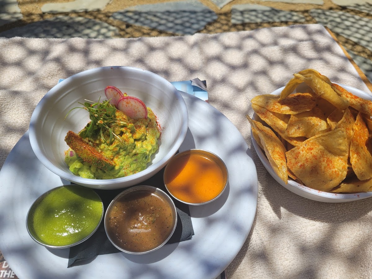 One of the standout features of Caravan Swim Club is its delicious and thoughtfully crafted menu. Whether you're a fan of fresh, light bites or hearty flavors, there’s something for everyone here. The Shrimp Tacos, a crowd favorite, are a must-try for anyone craving a zesty yet satisfying dish. These tacos are gluten-free (GF) and served with fresh shrimp, adding a burst of flavor in every bite. For a more shareable appetizer, try the Chips & Salsa-simple but incredibly satisfying. You can’t go wrong with their Guacamole Dip either, made fresh with creamy avocado and just the right seasoning. And, if you’re into bold, flavorful bites, don’t miss out on the Shishito Peppers, which are crispy, lightly charred, and perfect for snacking.